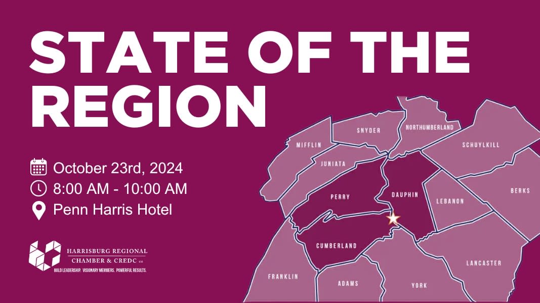 Join the Harrisburg Regional Chamber & CREDC as we hear county-level updates from the Chairs of the Cumberland, Dauphin, and Perry County Boards of Commissioners. Commissioners Kelly Neiderer, George Hartwick, and Frank Campbell will provide Chamber & CREDC members with updates on their respective counties’ progress. Topics will include: Economic Development & Housing; Human Services & Transportation; Special Focus: Election preparation and security measures as we quickly approach the 2024 Presidential Election.