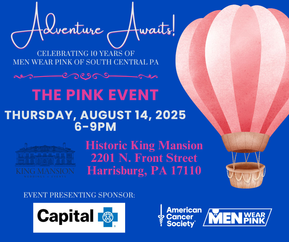 Join us on Thursday, August 14th at the Historic King Mansion in Harrisburg, PA as we welcome the 2025 Men Wear Pink of South Central PA Ambassadors and kick off our 10th anniversary season! The South Central PA campaign includes men who live and/or works in Adams, Cumberland, Dauphin, Franklin, Lancaster, Lebanon, Perry, and York Counties. Let's celebrate their commitment to ending cancer as we know it, for everyone.