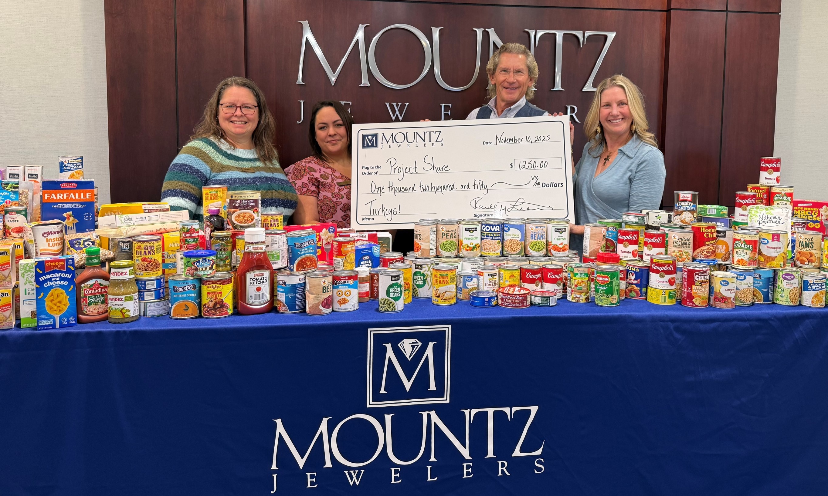 Continuing a beloved annual tradition, Mountz Jewelers matched the community’s and their employee’s generosity with a $1,250 donation to Project SHARE to help purchase turkeys for the upcoming holiday season.
