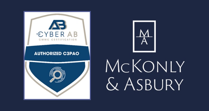Harrisburg, PA – McKonly & Asbury, an IPA300 firm with headquarters in Pennsylvania, announces that it has successfully met the Cybersecurity Maturity Model Certification (CMMC) authorization requirements and is now officially designated as a Certified Third-Party Assessor Organization (C3PAO). With this achievement, McKonly & Asbury is on the initial list of the first 35 firms posted to the Cyber AB website in the country to earn this designation.
