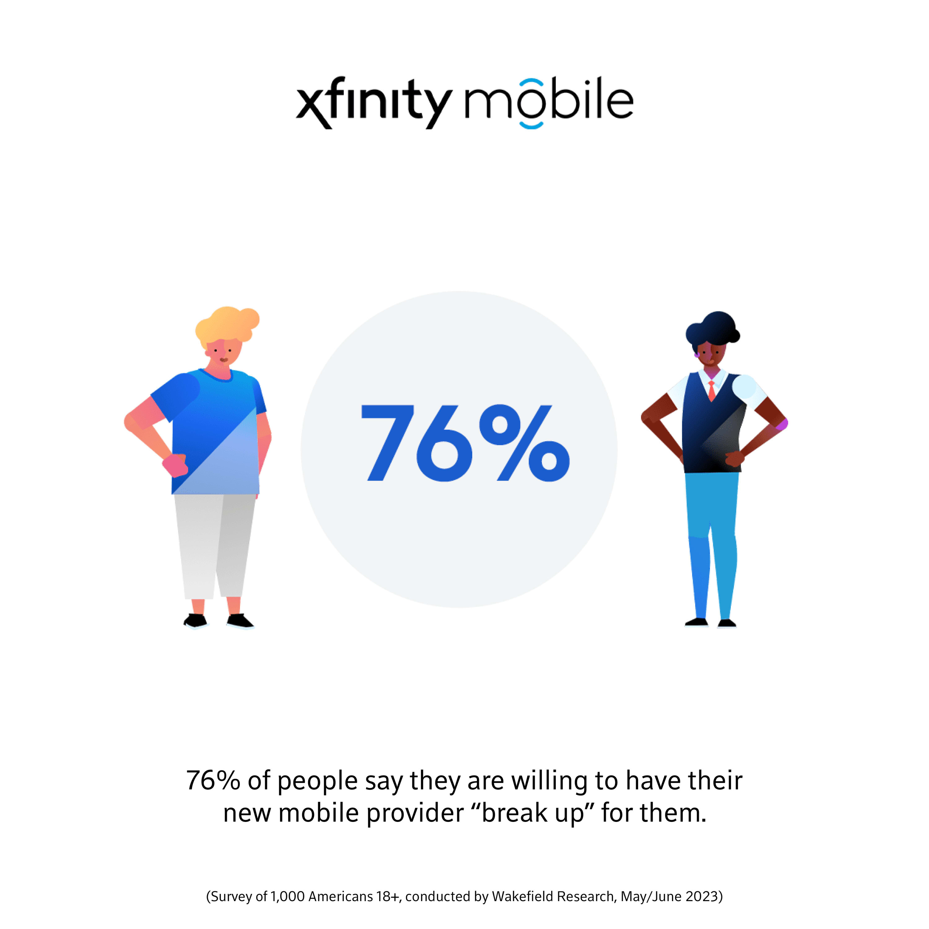 More than 3 in 4 people (76 percent) would prefer their new mobile provider “break up” with their old one for them. Xfinity Mobile is here to help. Customers looking to switch to Xfinity Mobile can walk into any Xfinity Store and ask for help to switch their service, from swapping out a SIM card, porting a phone number, and even breaking up with a customer’s previous carrier.
